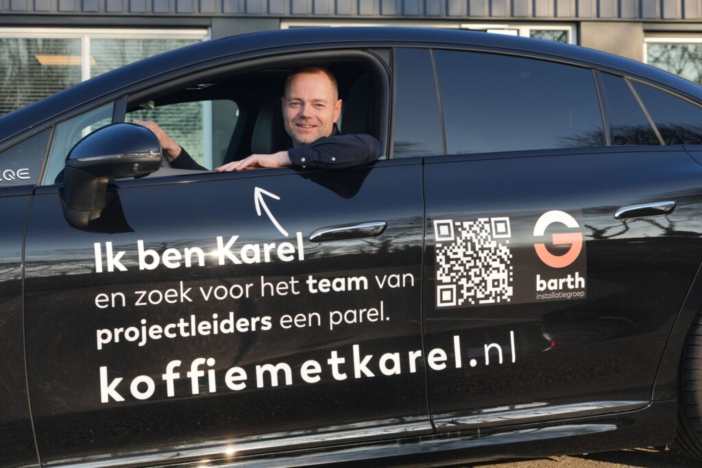 Elke collega is letterlijk het gezicht van zijn eigen vacature, en om die boodschap kracht bij te zetten, rijden ze rond in auto’s met opvallende bestickering. Geen standaard wervingsposter dus, maar een rijdend billboard met een persoonlijke touch.